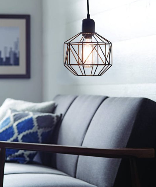 7"W 1-Light Metal Geometric Cage Plug-In Swag Pendant Light Bronze Finish