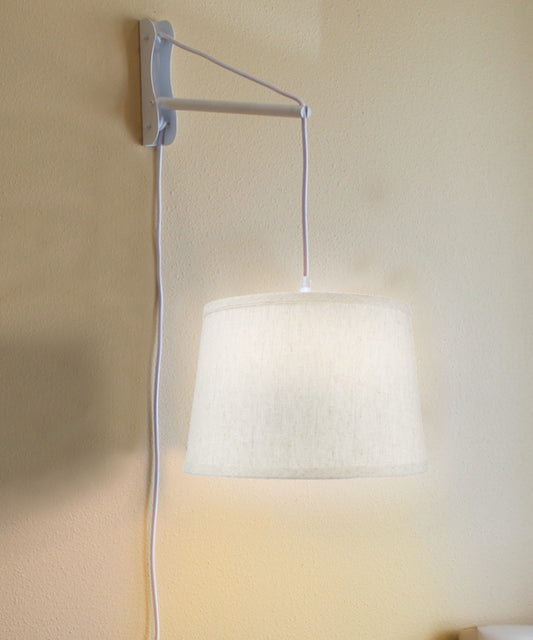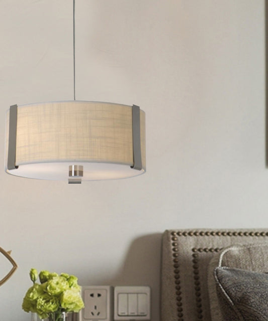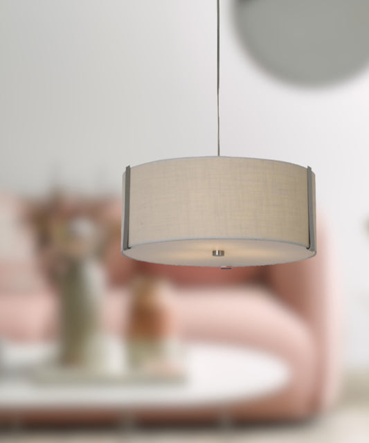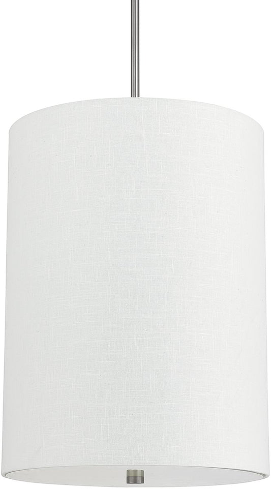 14"W 1 Light Pendant Brushed Nickel Finish with White Linen Shade