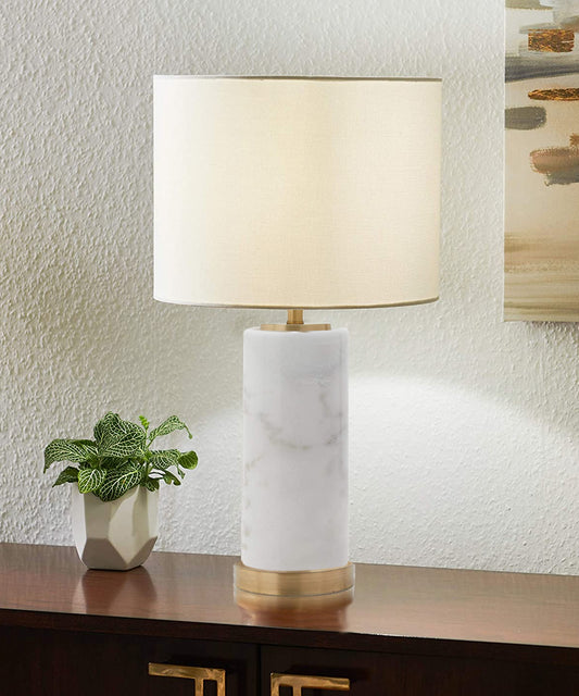 28"H C&C Glass Marble Table Lamp with White Linen Shade