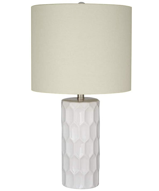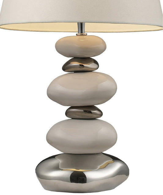 21"H White Ceramic Table Lamp Brushed Nickel Finish with Beige Shade