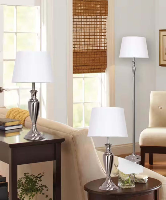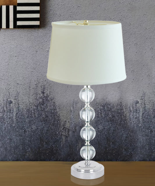 18"H Stacked Glass Ball Lamp Set Brushed Nickel, White Lampshade (Set of 2)