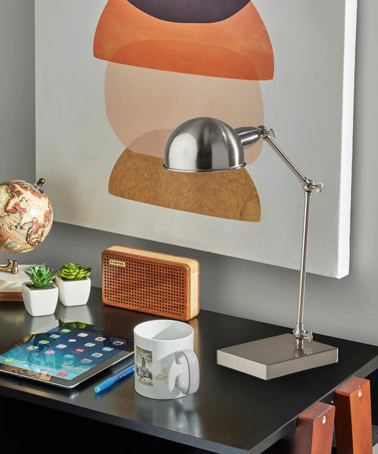 Adesso 21"H Swing Arm LED Pharmacy Desk Lamp, Adjustable Metal Brushed Steel Finish, Vintage Style